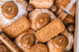 Biscoff dreams do come true ! get loaded up on biscoff with this box of biscoff donuts and empty puffs to fill with even more biscoff !
