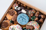 Boys love donuts so how can you go past this box of deliciousness filled with chocolate & caramel donuts .